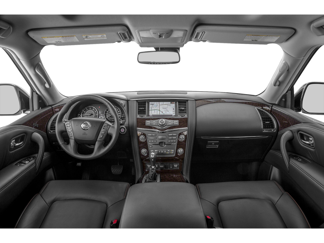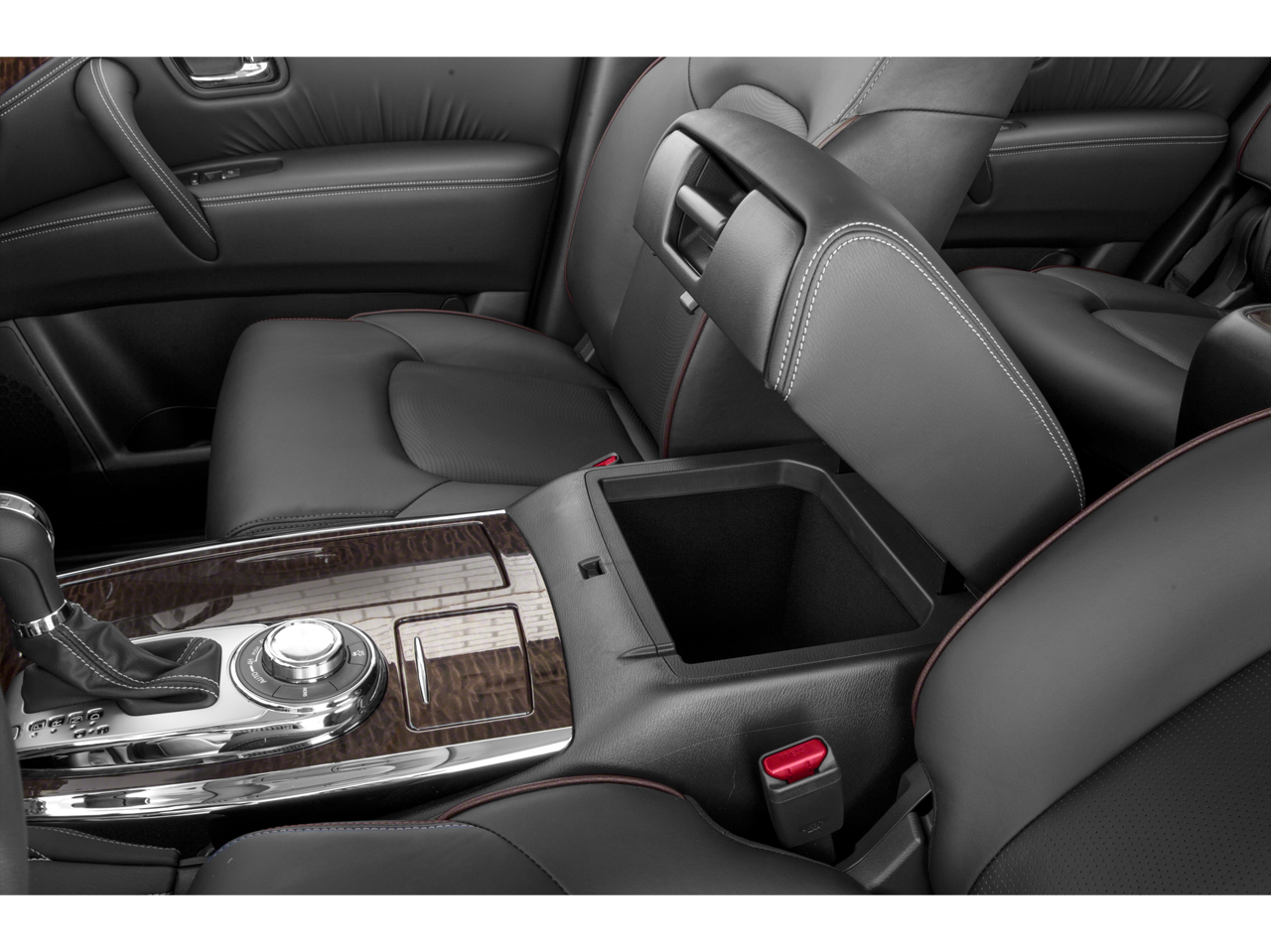 This vehicle includes the following Features: 13 Speakers, 2.937 Axle Ratio, 2nd & 3rd Row Carpeted Mats, 3rd row seats: split-bench, 4-Wheel Disc Brakes, A/V remote, ABS brakes, Air Conditioning, Alloy wheels, AM/FM radio: SiriusXM, Anti-whiplash front head restraints, Auto tilt-away steering wheel, Auto-dimming door mirrors, Auto-dimming Rear-View mirror, Auto-leveling suspension, Automatic temperature control, Brake assist, Bumpers: body-color, CD player, Cross Bars, Delay-off headlights, Driver door bin, Driver vanity mirror, Dual front impact airbags, Dual front side impact airbags, Electronic Stability Control, Emergency communication system: NissanConnect Services, Four wheel independent suspension, Front anti-roll bar, Front Bucket Seats, Front Center Armrest, Front dual zone A/C, Front fog lights, Front reading lights, Fully automatic headlights, Garage door transmitter: HomeLink, Headphones, Heated & Cooled Front Bucket Seats w/Driver Memory, Heated door mirrors, Heated front seats, Heated rear seats, Heated steering wheel, Illuminated entry, Leather Shift Knob, Leather-Appointed Seat Trim, Low tire pressure warning, Memory seat, Navigation System, Occupant sensing airbag, Outside temperature display, Overhead airbag, Overhead console, Panic alarm, Passenger door bin, Passenger vanity mirror, Power door mirrors, Power driver seat, Power Liftgate, Power moonroof, Power passenger seat, Power steering, Power windows, Radio data system, Radio: AM/FM/SXM/CD/MP3/HD, Rain sensing wipers, Rear air conditioning, Rear anti-roll bar, Rear reading lights, Rear seat center armrest, Rear window defroster, Rear window wiper, Reclining 3rd row seat, Remote keyless entry, Roof rack: rails only, Security system, Special Paint - Pearl White, Speed control, Speed-sensing steering, Speed-Sensitive Wipers, Split folding rear seat, Spoiler, Steering wheel memory, Steering wheel mounted audio controls, Tachometer, Telescoping steering wheel, Tilt steering wheel, Traction control, Trip computer, Turn signal indicator mirrors, Variably intermittent wipers, Ventilated front seats, Voltmeter, and Wheels: 20 Machine-Faced Chrome w/Tinted CC.
