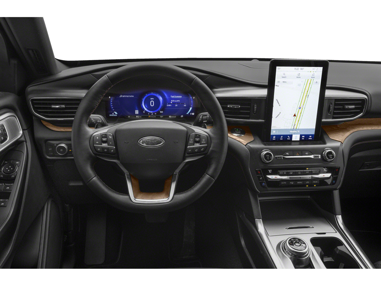 This vehicle includes the following Features: 4WD, 12 Speakers, 3.31 Non-Limited-Slip Axle Ratio, 3rd row seats: bench, 4-Wheel Disc Brakes, ABS brakes, Air Conditioning, Alloy wheels, AM/FM radio: SiriusXM, Auto High-beam Headlights, Auto-dimming door mirrors, Auto-dimming Rear-View mirror, Automatic temperature control, Brake assist, Bumpers: body-color, Compass, Delay-off headlights, Driver door bin, Driver vanity mirror, Dual front impact airbags, Dual front side impact airbags, Electronic Stability Control, Emergency communication system: SYNC 3 911 Assist, Exterior Parking Camera Rear, FordPass Connect, Four wheel independent suspension, Front anti-roll bar, Front Bucket Seats, Front Center Armrest, Front dual zone A/C, Front fog lights, Front reading lights, Fully automatic headlights, Garage door transmitter: HomeLink, Genuine wood dashboard insert, Heated door mirrors, Heated front seats, Heated rear seats, Heated steering wheel, Illuminated entry, Knee airbag, Leather steering wheel, Low tire pressure warning, Memory seat, Navigation System, Occupant sensing airbag, Outside temperature display, Overhead airbag, Overhead console, Panic alarm, Passenger door bin, Passenger vanity mirror, Power door mirrors, Power driver seat, Power Liftgate, Power moonroof, Power passenger seat, Power steering, Power windows, Radio data system, Radio: B&O Sound System by Bang & Olufsen, Rain sensing wipers, Rear air conditioning, Rear anti-roll bar, Rear reading lights, Rear window defroster, Rear window wiper, Remote keyless entry, Roof rack: rails only, Security system, Speed control, Speed-sensing steering, Speed-Sensitive Wipers, Split folding rear seat, Spoiler, Steering wheel memory, Steering wheel mounted audio controls, SYNC 3 Communications & Entertainment System, SYNC 3/Apple CarPlay/Android Auto, Tachometer, Telescoping steering wheel, Tilt steering wheel, Traction control, Trip computer, Turn signal indicator mirrors, Variably intermittent wipers, Ventilated front seats, Voice-Activated Touchscreen Navigation System, and Wheels: 20 Bright Machined-Face Aluminum.
