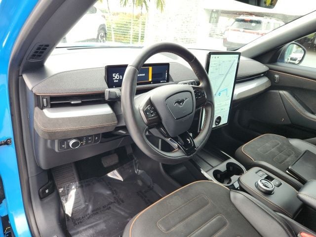 The Mustang Mach-E GT's stunning blue exterior, complemented by its premium ActiveX Sport Seats and heated steering wheel, exudes a bold and sophisticated presence. Elevate your driving experience with the advanced SYNC 4A system, featuring enhanced voice recognition and seamless smartphone integration through Apple CarPlay and Android Auto.