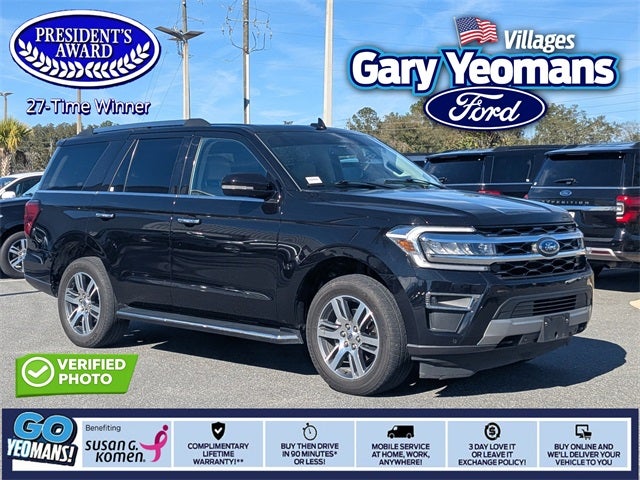 THIS VEHICLE INCLUDES THE FOLLOWING FEATURES AND OPTIONS: Equipment Group 301A Mid Package (Panoramic Vista Roof), Expedition Limited, Ford Gold Certified Certified, EcoBoost 3.5L V6 GTDi DOHC 24V Twin Turbocharged, 4WD, Navigation system: Connected Navigation, 12 Speakers, 3.31 Axle Ratio, 3rd row seats: split-bench, 4-Wheel Disc Brakes, ABS brakes, Adjustable pedals, Air Conditioning, Alloy wheels, AM/FM radio: SiriusXM with 360L, Auto High-beam Headlights, Auto-dimming door mirrors, Auto-dimming Rear-View mirror, Automatic temperature control, Brake assist, Bumpers: body-color, Compass, Delay-off headlights, Driver door bin, Driver vanity mirror, Dual front impact airbags, Dual front side impact airbags, Electronic Stability Control, Emergency communication system: SYNC 4 911 Assist, Exterior Parking Camera Rear, Four wheel independent suspension, Front anti-roll bar, Front Bucket Seats, Front Center Armrest, Front dual zone A/C, Front fog lights, Front License Plate Bracket, Front reading lights, Fully automatic headlights, Garage door transmitter, Heated & Ventilated Leather Front Captain's Chairs, Heated door mirrors, Heated front seats, Heated rear seats, Heated steering wheel, Illuminated entry, Leather steering wheel, Low tire pressure warning, Memory seat, Occupant sensing airbag, Outside temperature display, Overhead airbag, Overhead console, Panic alarm, Passenger door bin, Passenger vanity mirror, Pedal memory, Power door mirrors, Power driver seat, Power Liftgate, Power passenger seat, Power steering, Power windows, Radio data system, Radio: B&O Sound System by Bang & Olufsen, Rain sensing wipers, Rear air conditioning, Rear anti-roll bar, Rear reading lights, Rear window defroster, Rear window wiper, Reclining 3rd row seat, Remote keyless entry, Second Row Power Windows Removal, Security system, SiriusXM w/360L, Speed control, Speed-sensing steering, Speed-Sensitive Wipers, Split folding rear seat, Spoiler, Steering wheel memory, Steering wheel mounted audio controls, SYNC 4 w/Enhanced Voice Recognition, Tachometer, Telescoping steering wheel, Tilt steering wheel, Traction control, Trip computer, Turn signal indicator mirrors, Variably intermittent wipers, Ventilated front seats, Voltmeter, and Wheels: 20 Bright Machined Aluminum.