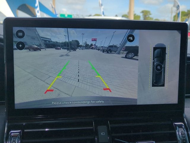 This vehicle includes the following Features: Equipment Group 201A Reserve I, Heavy-Duty Trailer Tow Package (26mm Radiator, Class IV w/4-Pin & 7-Pin Connectors, Electronic Traction Assist (eLSD), Front Tow Hooks, Pro-Trailer Backup Assist 2.0, Smart Trailer Tow, Tiered Cargo Area Management System, Trailer Brake Controller, and Trailer Sway Control), Luxury Package (Illuminated 1st & 2nd Row Seat Belts, Lincoln Lit Star in Grille, Perfect Position Seats (30-Way) w/Active Motion, and Radio: Revel Ultima 3D Audio System w/28 Speakers), 14 Speakers, 2nd Row Heated/Ventilated 40/Console/40 Seat, 3.73 Axle Ratio, 3rd row seats: split-bench, 4-Wheel Disc Brakes, ABS brakes, Active Park Assist 2.0 Delete, Adaptive suspension, Adjustable pedals, Air Conditioning, All-Weather Floor Liners w/Carpet Floor Mats, Alloy wheels, AM/FM radio: SiriusXM with 360L, Audio memory, Auto High-beam Headlights, Auto Start-Stop Technology, Auto tilt-away steering wheel, Auto-dimming door mirrors, Auto-dimming Rear-View mirror, Auto-leveling suspension, Automatic temperature control, Bodyside moldings, Brake assist, Bumpers: body-color, Chrome Roof Rack w/Black Crossbars, Compass, Delay-off headlights, Driver door bin, Driver vanity mirror, Driver's Seat Mounted Armrest, Dual front impact airbags, Dual front side impact airbags, Electronic Stability Control, Emergency communication system: 911 Assist, Exterior Parking Camera Rear, Four wheel independent suspension, Front anti-roll bar, Front Bucket Seats, Front dual zone A/C, Front fog lights, Front reading lights, Fully automatic headlights, Garage door transmitter, Genuine wood dashboard insert, Genuine wood door panel insert, Hands-Free Liftgate Delete, Head restraints memory, Heads-Up Display, Heated door mirrors, Heated front seats, Heated rear seats, Heated steering wheel, HVAC memory, Illuminated entry, Leather steering wheel, Low tire pressure warning, Memory seat, Navigation system: Connected Navigation (3-year trial), Occupant sensing airbag, Outside temperature display, Overhead airbag, Overhead console, Panic alarm, Passenger door bin, Passenger seat mounted armrest, Passenger vanity mirror, Pedal memory, Power adjustable rear head restraints, Power door mirrors, Power driver seat, Power Liftgate, Power moonroof: Panoramic Vista Roof, Power passenger seat, Power steering, Power windows, Prem Lthr Auto Htd/Ventiltd Perfect Position Seats, Radio data system, Radio: Revel AM/FM/HD/MP3 Audio System, Rain sensing wipers, Rear air conditioning, Rear anti-roll bar, Rear audio controls, Rear reading lights, Rear window defroster, Rear window wiper, Reclining 3rd row seat, Remote keyless entry, Security system, SiriusXM w/360L, Slow Climb Drive Mode, Speed control, Speed-sensing steering, Speed-Sensitive Wipers, Split folding rear seat, Spoiler, Steering wheel memory, Steering wheel mounted audio controls, SYNC 4 Communications & Entertainment System, Tachometer, Telescoping steering wheel, Tilt steering wheel, Traction control, Trip computer, Turn signal indicator mirrors, Variably intermittent wipers, Ventilated front seats, Ventilated rear seats, Voice-Activated Touchscreen Navigation System, Wheels: 22 12-Spoke Bright-Machined Aluminum, and Wheels: 22 Bright Machined Aluminum.