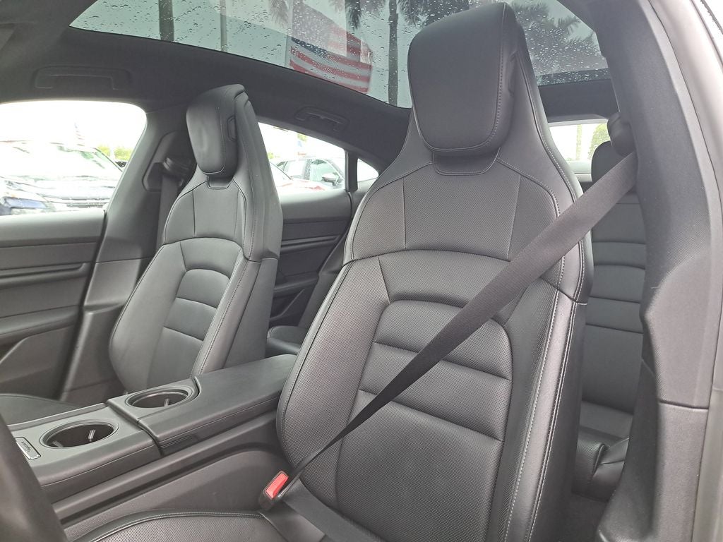 THIS VEHICLE HAS THE FOLLOWING FEATURES AND OPTIONS: Taycan 4S, 4D Sedan, Electric Motor, 2-Speed Automatic, AWD, Black, Black Leather, 8-Way Power Seats, Auto-dimming Rear-View mirror, Brake assist, Electronic Stability Control, Exterior Parking Camera Rear, Navigation system: Porsche Communication Management (PCM), Porsche Communication Management, Spoiler, Wheels: 19 Taycan S Aero, 10 Speakers, 3 Years of 30 Minute DC Charging Sessions, 4-Wheel Disc Brakes, ABS brakes, Adaptive suspension, Air Conditioning, Alloy wheels, Auto High-beam Headlights, Auto-dimming door mirrors, Auto-leveling suspension, Automatic temperature control, Bumpers: body-color, Compass, Delay-off headlights, Driver door bin, Driver vanity mirror, Dual front impact airbags, Dual front side impact airbags, Four wheel independent suspension, Front anti-roll bar, Front Bucket Seats, Front Center Armrest, Front dual zone A/C, Front reading lights, Fully automatic headlights, Garage door transmitter: HomeLink, Heated door mirrors, Heated front seats, Illuminated entry, Knee airbag, Leather steering wheel, Low tire pressure warning, Occupant sensing airbag, Outside temperature display, Overhead airbag, Overhead console, Panic alarm, Partial Leather Seat Trim, Passenger door bin, Passenger vanity mirror, Power door mirrors, Power driver seat, Power passenger seat, Power steering, Power windows, Radio data system, Rain sensing wipers, Rear anti-roll bar, Rear fog lights, Rear reading lights, Rear seat center armrest, Rear side impact airbag, Rear window defroster, Remote keyless entry, Security system, Speed control, Speed-sensing steering, Split folding rear seat, Sport steering wheel, Steering wheel mounted audio controls, Telescoping steering wheel, Tilt steering wheel, Traction control, Trip computer, and Variably intermittent wipers.