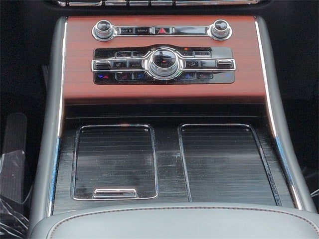THIS VEHICLE INCLUDES THE FOLLOWING FEATURES AND OPTIONS: Elements Package Plus (Auto Air Refresh, Auto Heated/Ventilated Driver & Passenger Seats, Heated Steering Wheel, Heated VisioBlade Wipers, and Heated/Ventilated 2nd Row Outboard Seats), Equipment Group 201A (Phone As A Key), Jet Package (Black Exterior Elements, Body-Color Exterior Elements, and Wheels: 22 Black Aluminum), Lincoln Co-Pilot360 1.5 Plus (Active Park Assist 2.0, Evasive Steering Assist, Intelligent Adaptive Cruise Control, and Reverse Brake Assist), 14 Speakers, 3.58 Axle Ratio, 3rd row seats: split-bench, 4-Wheel Disc Brakes, ABS brakes, Air Conditioning, Alloy wheels, AM/FM radio: SiriusXM, Audio memory, Auto High-beam Headlights, Auto-dimming door mirrors, Auto-dimming Rear-View mirror, Automatic temperature control, Brake assist, Bumpers: body-color, Compass, Delay-off headlights, Driver door bin, Driver vanity mirror, Dual front impact airbags, Dual front side impact airbags, Electronic Stability Control, Emergency communication system, Four wheel independent suspension, Front anti-roll bar, Front Bucket Seats, Front Center Armrest, Front dual zone A/C, Front reading lights, Full Rear Console, Fully automatic headlights, Garage door transmitter, Head-Up Display Removal (DISC), Heated door mirrors, Heated front seats, HVAC memory, Illuminated entry, Knee airbag, Lane Departure Warning System, Leather steering wheel, Low tire pressure warning, Memory seat, Navigation System, Occupant sensing airbag, Outside temperature display, Overhead airbag, Overhead console, Panic alarm, Passenger door bin, Passenger vanity mirror, Power door mirrors, Power driver seat, Power Liftgate, Power moonroof: Panoramic Vista Roof, Power passenger seat, Power steering, Power windows, Premium Lthr Heated/Ventilated Fnt Captain's Chairs, Radio data system, Radio: Revel AM/FM Audio System w/14 Speakers, Rain sensing wipers, Rear air conditioning, Rear anti-roll bar, Rear audio controls, Rear dual zone A/C, Rear reading lights, Rear window defroster, Rear window wiper, Remote keyless entry, Security system, SiriusXM Radio, Speed control, Speed-Sensitive Wipers, Split folding rear seat, Spoiler, Steering wheel memory, Steering wheel mounted A/C controls, Steering wheel mounted audio controls, SYNC 3 Communication & Entertainment System, Tachometer, Telescoping steering wheel, Tilt steering wheel, Traction control, Trip computer, Turn signal indicator mirrors, Variably intermittent wipers, Ventilated front seats, and Wheels: 20 Bright-Machined Aluminum.