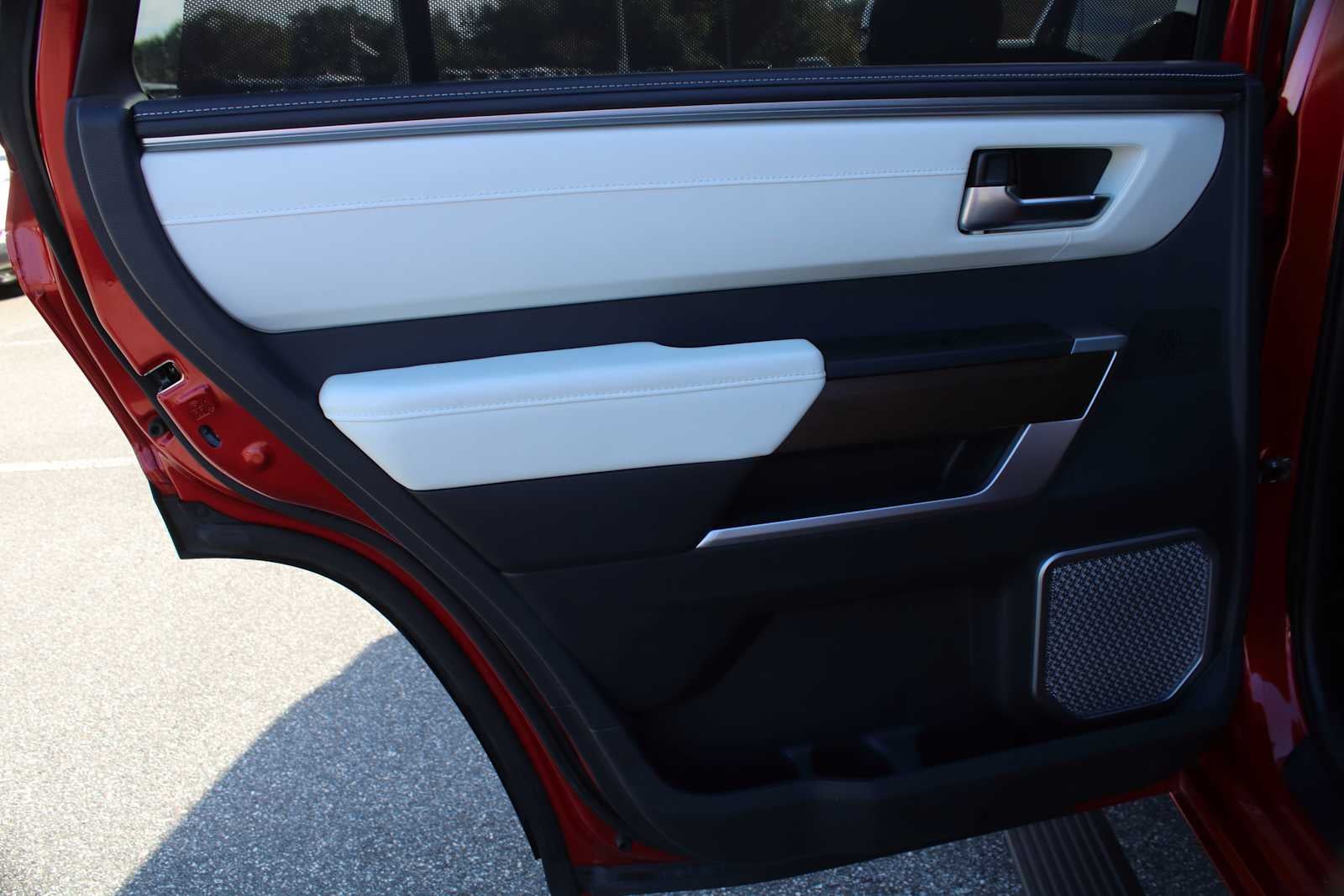 Leather Seats, Third Row Seat, Navigation, Sunroof, Panoramic Roof, 4x4, Quad Bucket Seats, Power Liftgate, Rear Air, Heated Driver Seat, Heated Rear Seat, Cooled Driver Seat, Cooled Rear Seat, Back-Up Camera, Running Boards. Rear Spoiler, MP3 Player, Remote Trunk Release, Privacy Glass, Keyless Entry. Toyota Capstone with Supersonic Red exterior and BLACK/WHITE interior features a V6 Cylinder Engine with 437 HP at 5200 RPM*.