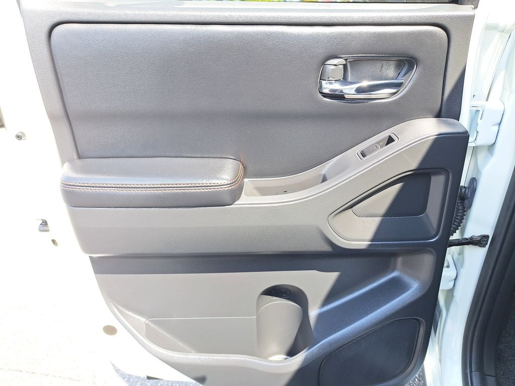 THIS VEHICLE HAS THE FOLLOWING FEATURES AND OPTIONS: Tow Package, Telematics Delete Package (NissanConnect Services & Wi-Fi Hotspot Delete), Frontier PRO-X, Nissan Certified Certified, 4D Crew Cab, 3.8L DI DOHC 24V V6, 9-Speed Automatic with Overdrive, RWD, Glacier White, Charcoal Cloth, 17 Painted Alloy Wheels, 2-Tone Beadlock Style Wheel Accessory, 3.692 Axle Ratio, 4-Wheel Disc Brakes, 6 Speakers, ABS brakes, Air Conditioning, Alloy wheels, Anti-whiplash front head restraints, Auto High-beam Headlights, Automatic temperature control, Blind Spot Warning, Brake assist, Bumpers: body-color, Carpeted Floor Mats, Delay-off headlights, Driver door bin, Driver vanity mirror, Dual front impact airbags, Dual front side impact airbags, Electronic Stability Control, Electronic Tailgate Lock, Emergency communication system, Front anti-roll bar, Front Bucket Seats, Front Center Armrest, Front dual zone A/C, Front fog lights, Front reading lights, Front wheel independent suspension, Fully automatic headlights, Illuminated entry, Knee airbag, Leather Shift Knob, Leather steering wheel, Low tire pressure warning, Occupant sensing airbag, Off-Road Style Step Rails, Overhead airbag, Overhead console, Panic alarm, Passenger door bin, Passenger vanity mirror, Power door mirrors, Power driver seat, Power passenger seat, Power steering, Power windows, PRO Embroidered Premium Cloth Seat Trim, Radio data system, Radio: SXM/AM/FM/AUX/USB Audio System, Rear anti-roll bar, Rear seat center armrest, Rear side impact airbag, Rear step bumper, Remote Engine Starter, Remote Engine Starter Accessory, Remote keyless entry, Security system, Speed control, Speed-sensing steering, Split folding rear seat, Steering wheel mounted audio controls, Tachometer, Telescoping steering wheel, Tilt steering wheel, Traction control, Trip computer, Variably intermittent wipers, Voltmeter, and Wireless Apple CarPlay/Wireless Android Auto.